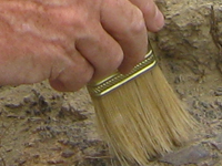 Paleontologists Dr. John Hoganson and Becky Barnes clear rubble from the Whiskey Creek dig site.