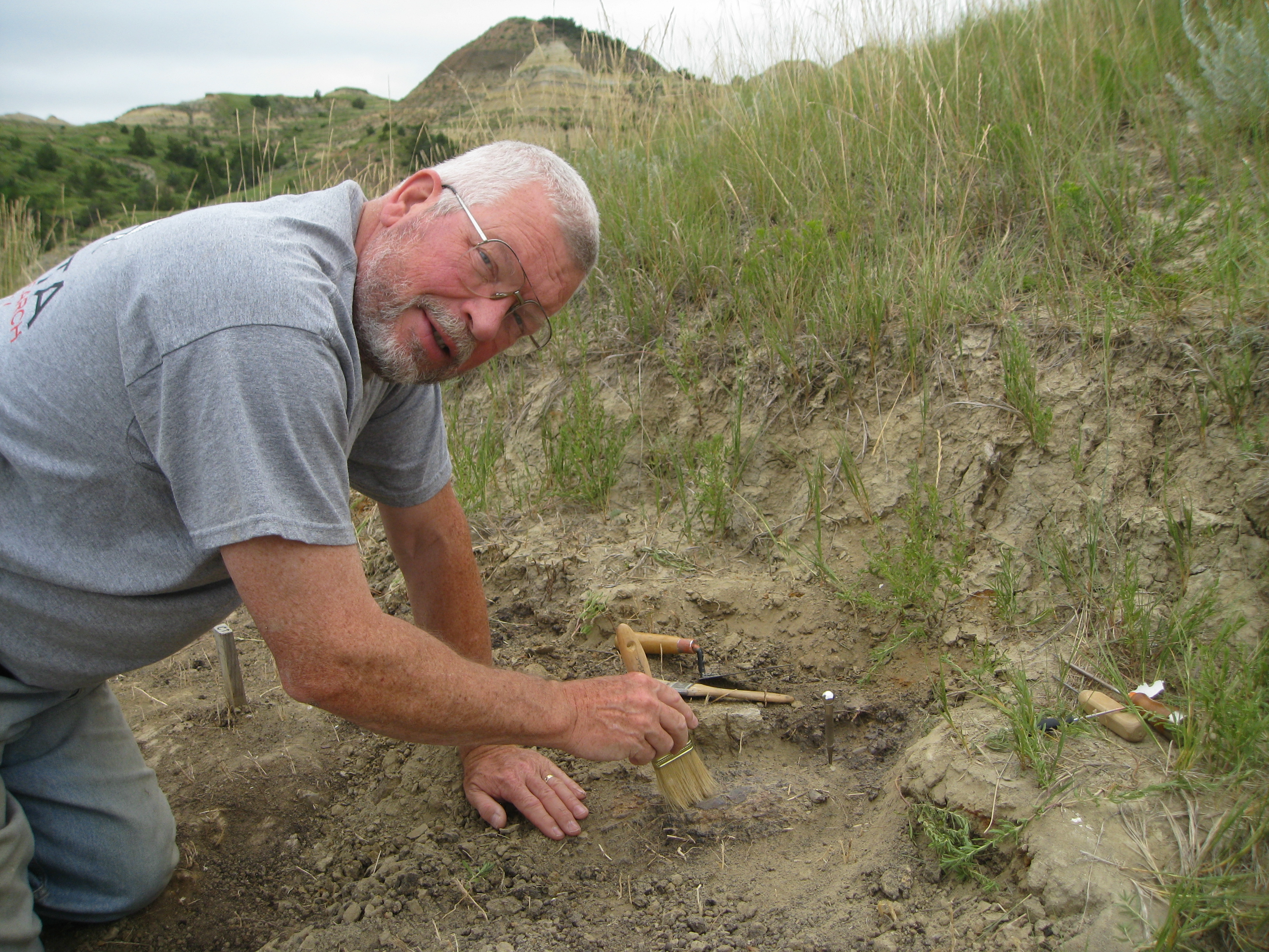 Jim Daly excavating 60 million year old crocodile bones at our Whiskey Creek site.